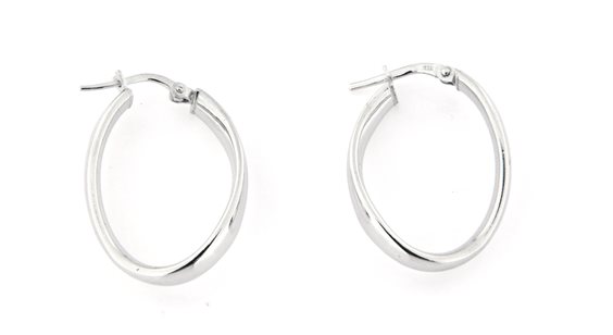 orecchini a cerchio in argento rodiato 925 forma ovale leggermente ritorta