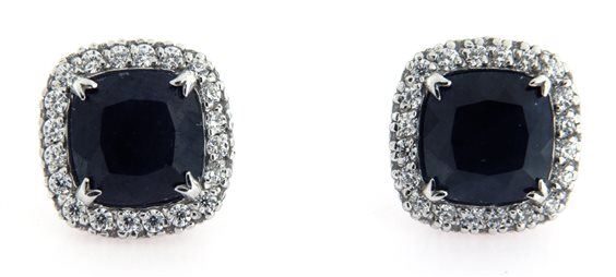 ORECCHINI LOBO IN ORO BIANCO 750% CON AGATA BLU SCURA E ZIRCONI PESO 6,2 GR