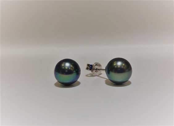 Orecchini in oro bianco 18Kt, gr 2,8, rodiato. Perla Tahiti nera mm 8,5/9.