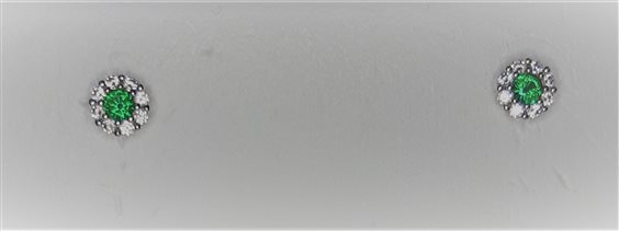 Orecchini donna , oro bianco 18 KT (750%) , gr.1.6 , diametro cm 0.5 , pietra centrale verde , contorno pietre bianche , zirconi incastonati con griffe. Scatola e garanzia originali.