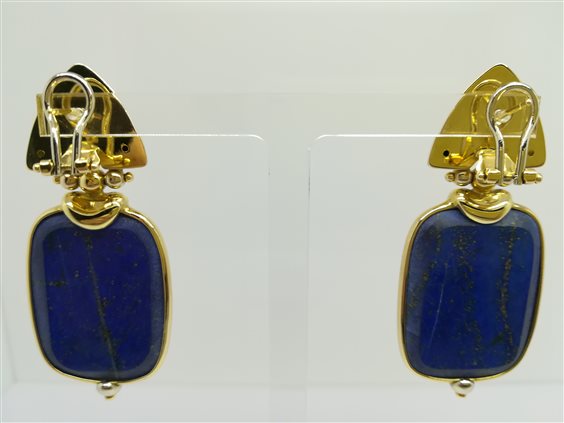 Orecchini pendenti in oro giallo 750/00 e lapis con chiusura perno e clips (clips in oro bianco).