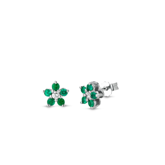 orecchini in oro 18k con smeraldo. Orecchini al lobo design fiore piccolo. Purezza materiale: SI Colore diamante:G