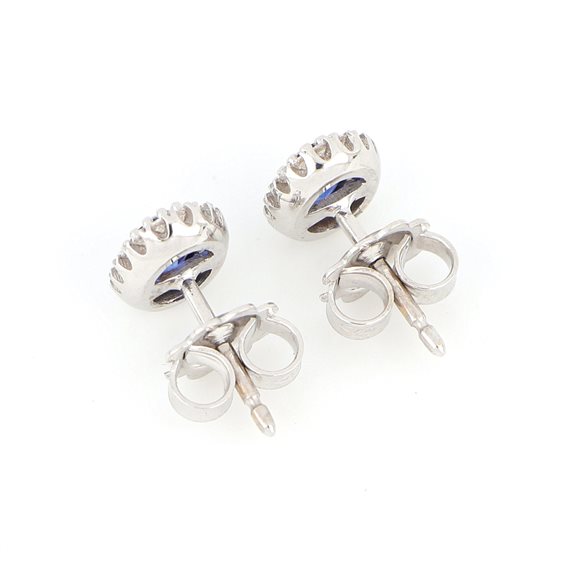 Orecchini in Oro Bianco 18 kt Peso Totale gr. 2.20 Dimensioni 9.00 x 7.00 mm 2 Zaffiri peso totale ct 1.03 Diamanti Peso ct 0.15 Colore F Purezza SI Paio di orecchini modello Kate in oro bianco 18 kt con Zaffiri e Diamanti naturali taglio brillante. Chiusura con perno e farfalla robusta e resistente.