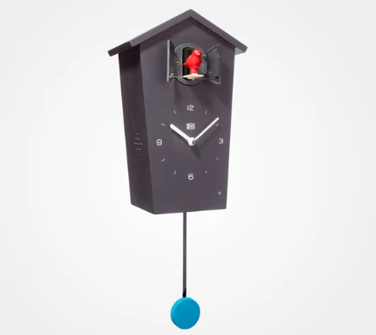 Birdhouse Orologio a cucù moderno in legno MDF, movimento al quarzo, sensore luce, 3 batterie AA non incluse Dotato di 5 diverse suonerie con 5 canti diversi e relativi uccellini in metallo di diversi colori sostituibili con magnete