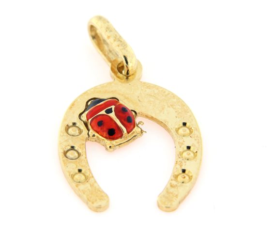 Pendente a forma di ferro di cavallo con coccinella smaltata in oro 750%