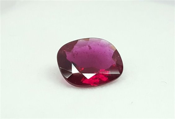 Gemma sintetica (tormalina) di cts 5,95, taglio cuscino misure 14x12; colore rosso intenso ideale per lo sviluppo di pendenti e anelli di vari modelli.