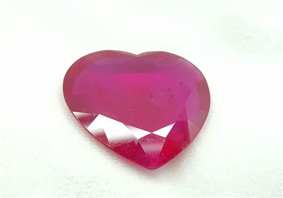 Rubino sintetico taglio cuore cm 2.5x2.8; colore rosso intenso cts 44,13 ideale per lo sviluppo di pendenti da gioielleria.