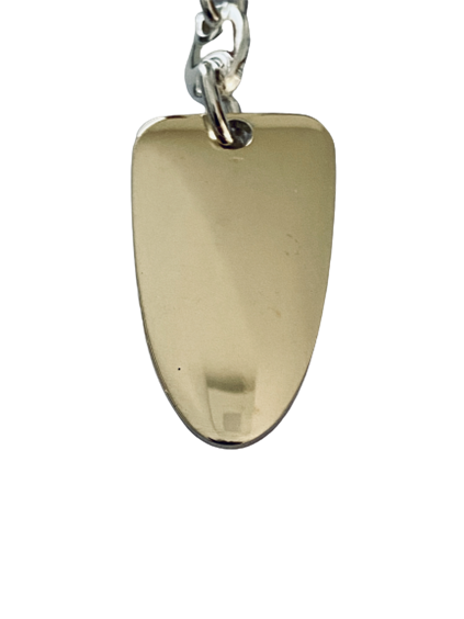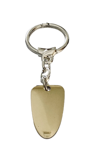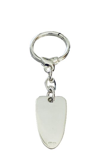 Portachiavi in argento 925 massiccio . La targa è a forma di scudetto (cm4x2,3) ed è completamente rivestita da un riporto in oro giallo 18kt a finitura lucida. Il gancio è una brise' di sicurezza