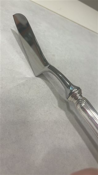 COLTELLO FORMAGGIO TENERO DAL MARCHIO ZARAMELLA, MANICO IN ARGENTO MASSICCIO 800 CON LAMA IN ACCIAIO INOX. PEZZO UNICO PER LA SUA LINEA ELEGANTE E SEMPLICE IN STILE INGLESE.
