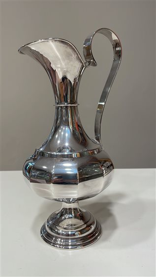 PREGIATO PEZZO D'ARGENTERIA DELL'ARTIGIANATO. L'ALTA QUALITA' DEI MATERIALI E DELLA LAVORAZIONE SONO GARANTITI DAI MARCHI LEGALI IMPRESSI SUL PEZZO. ANFORA RAZZOLINI CON MANICO IN ARGENTO MASSICCIO 800, GR 496. ANFORA IN STILE INGLESE CON BASE E BORDI LISCI