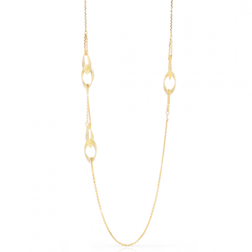 Collana lunga con elementi ovali alternati di filo con finitura diamantata. Lunghezza 105 cm.