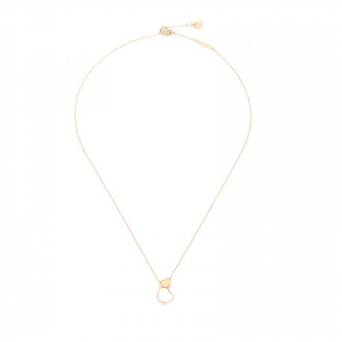 Collana con cuore piccolo in oro 9kt e cuore pendente con madreperla. La catena è rifinita con un mini-charm a cuore e può essere regolata su due diverse lunghezze 39-41 cm. Quest'esclusiva collana con cuore piccolo che sostiene un cuore più grande, simboleggia la forza dell'amore, quello vero che non conosce limiti né confini, che resiste e vince il tempo.