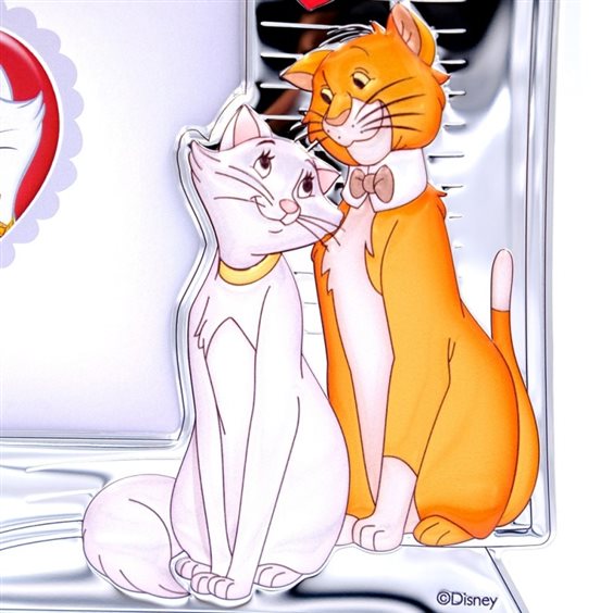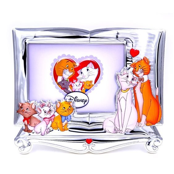 Valenti Argenti Collezione DisneY Aristogatti Cornice in argento 925 bilaminato con smalti colorati Adatto per fotografie 13x18 Misura fascia cornice 2,5 cm Retro legno color bianco avorio
