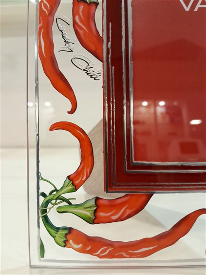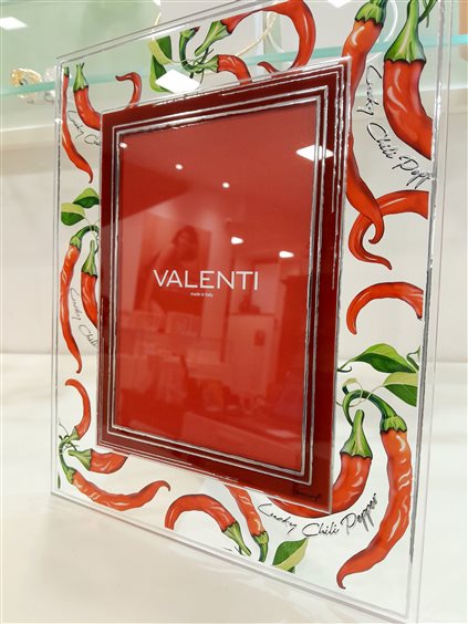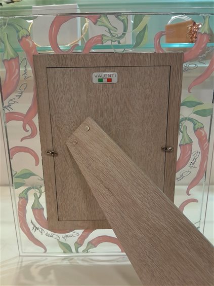 Cornice da appoggio in vetro con foglia argento e motivo cuori, adatta per fotografie formato 13x18 cm, retro legno.