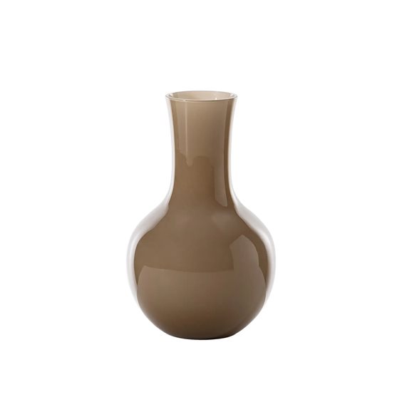 Negli anni ‘40 Carlo Scarpa concepisce i suoi manufatti con una forte connotazione ispirata alle tradizioni d’oriente, le cui forme si ispirano alle porcellane orientali. Lo segue Tobia Scarpa,negli anni ‘60, con le proprie forme minimali ed eleganti dei modelli monocromi denominati ”Opachi”. Dettaglio prodotto Colore MOKA Ref. FO351305000O0BSS MADE IN ITALY Altezza 28 CM Diametro 18 CM Anno 1960 Collezione OPACHI Tecnica di lavorazione Sabbiato, Soffiato