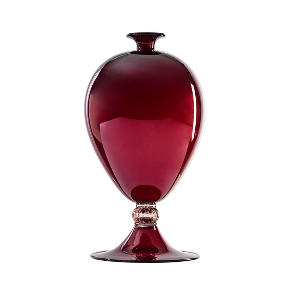 VERONESE 600.01 RB DEC RC ALTEZZA: 32 cm DIAMETRO: 20 cm SOFFIATO Il vetro è soffiato e lavorato a mano dal maestro in Fornace. “Dalla tela de «L’annunciazione della Vergine» di Paolo Veronese alla realtà della Fornace: è questo il magnifico viaggio del vaso di Vittorio Zecchin. Forma complessa, bombata oltre l’immaginazione: il Veronese sfida deciso la gravità, come nel quadro che originariamente lo ospita. E la sua bellezza vince su tutto a distanza di secoli.”