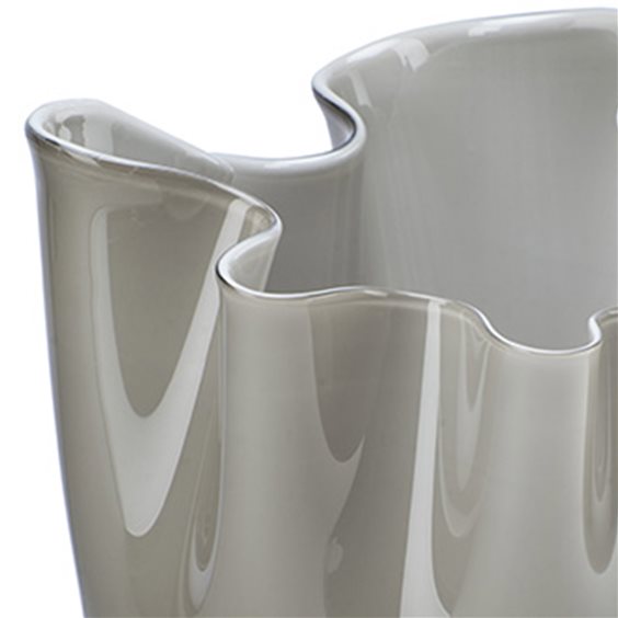 FAZZ. OPALINO 700.02 TP INT. TP CARATTERISTICHE ALTEZZA: 24 cm DIAMETRO: 20 cm PESO UNITARIO: 1,2 kg SOFFIATO OPALINO, MANO VOLANTE “La suggestiva rielaborazione della tecnica Opalini del XV secolo lo rende unico nel colore. Il genio di Fulvio Bianconi lo rende inimitabile nella forma, plasmata come le gonne mosse dal vento. Tanto che di ogni Fazzoletto Opalini non ne esiste uno identico in tutto il mondo.”