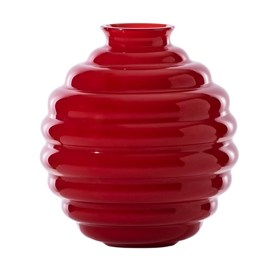 ALTEZZA: 18 cm DIAMETRO: 17 cm “Ritmo: è questa la parola che definisce la forma dei vasi della serie Dèco di VENINI. Gli anelli si ripetono, uno dopo l’altro. Aumentano, diminuiscono, poi aumentano nuovamente. Sembrano muoversi come cerchi nell’acqua con onde e riflessi. Un movimento che è una danza.” SOFFIATO OPALINO Ottenuto dalla sovrapposizione del lattimo con altri vetri, il vetro opalino è soffiato e lavorato a mano.