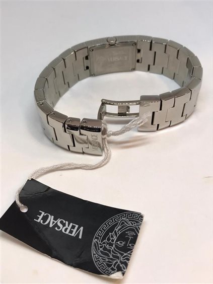Referenza: VCSQ503 Marchio: VERSACE Codice produttore: csq 99 d 009 s000 Collezione: GRECA Sesso: Donna Linea: Classica Materiale cassa: Acciaio Colore quadrante: nero 4 cifre arabe Materiale bracciale: Acciaio Colore bracciale: acciaio Chiusura: Deployant Movimento generico: Quarzo Movimento specifico: eta 901.001 Vetro: Zaffiro Convesso Dimensione cassa mm: 20x27x7 Peso gr: 138 Water resistant: 30 meters