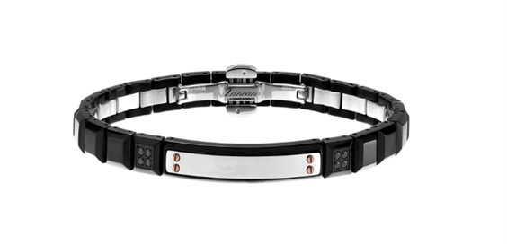 Bracciale da uomo in Acciaio con trattamento PVD nero, collezione Hi-Tekh Placca centrale in acciaio. Diametro bracciale 6,5 cm.