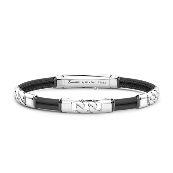 Bracciale in argento 925 e pelle naturale, con chiusura in acciaio inox regolabile in 3 posizioni