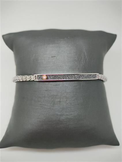 Particolare bracciale in argento con targa impreziosita da brillante di ct 0.015 su castone oro rosa e "polvere" di diamante nero ct 0.11