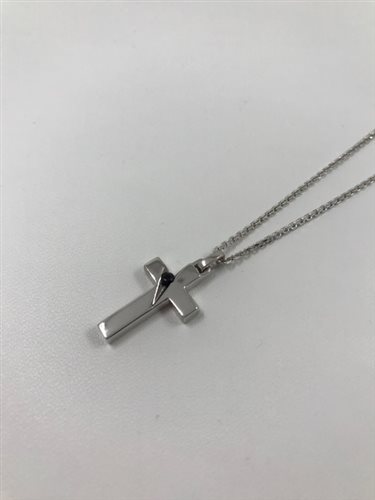 Girocollo argento con crocifisso pendente,con zircone nero.