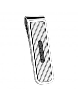 Ferma soldi rettangolare in acciaio. Decoro lucido e fila centrale di spinelli neri.